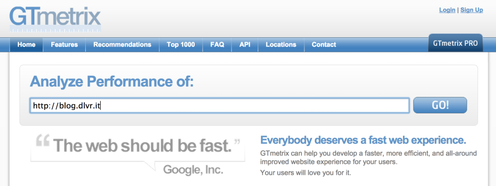GTmetrix is also very simple to use. Just input your website URL and hit the GO! button.